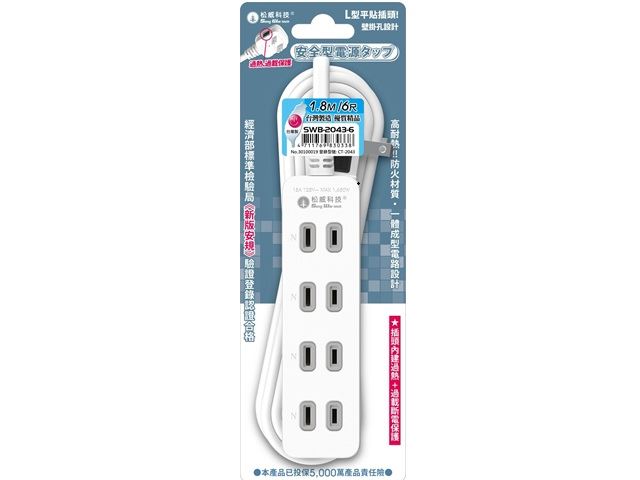 【松威科技】3+1座2P延長線(L型平貼插座)