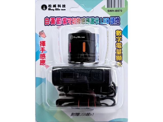 【松威科技】白/黃/藍/紫可切換感應激光LED頭燈