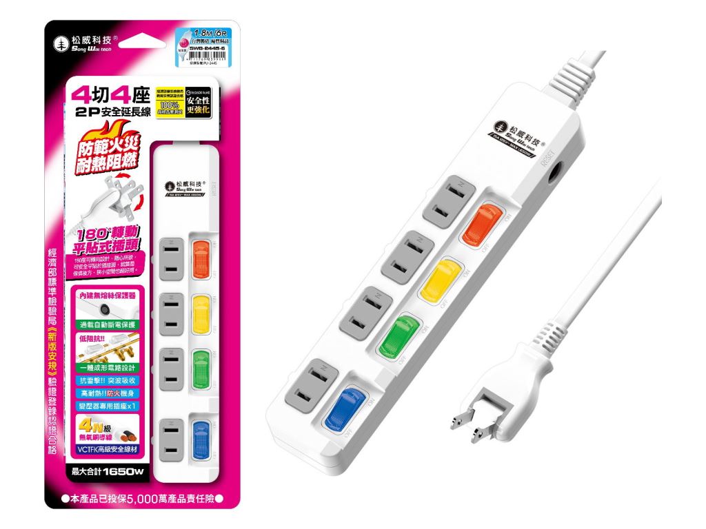 松威科技 4切4座2P延長線